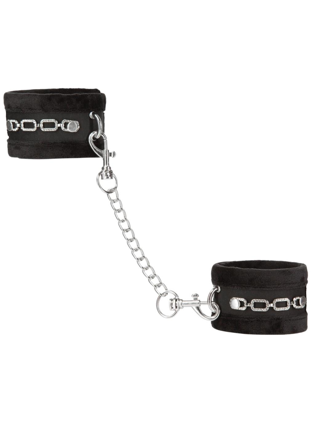 This set of cuffs is the perfect introduction for anyone into the world of BDSM and light bondage. They are comfortable and easy to use so get ready to discover a sensual world of punishing pleasure. Each cuff features a crystal accented chain for an added touch of elegance and luxury to your light bondage playtime.