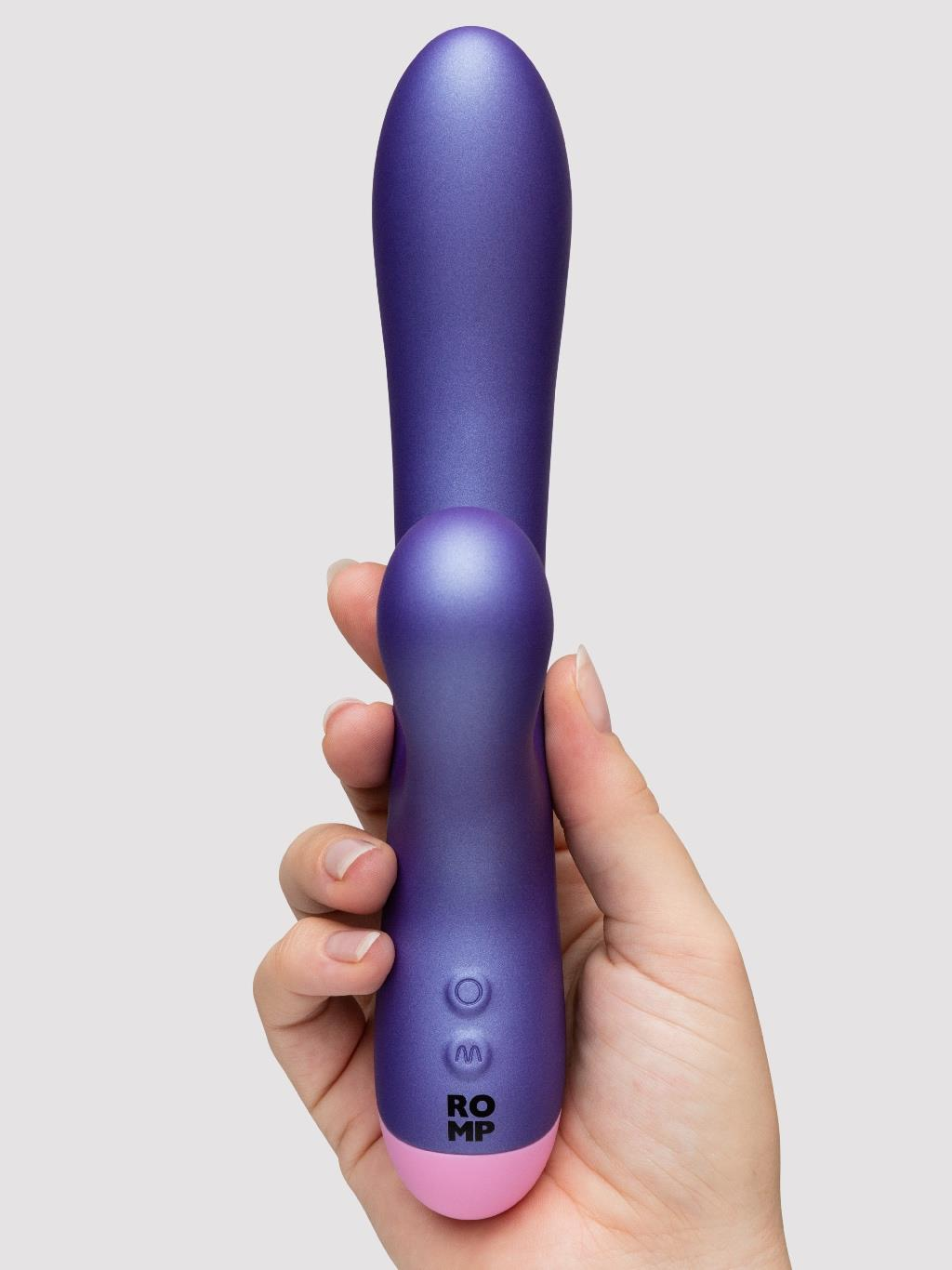ROMP Pulse is a rabbit vibrator with Pleasure Air clitoral stimulation and internal G-Spot vibrator arm. Experiment with dual motors to immerse yourself in intense sensations while customizing your blended orgasm bliss. Adjust the settings to discover the perfect balance between intensity and rhythm for a truly exhilarating experience. Let the cosmic design and vibrations take you out of this world.